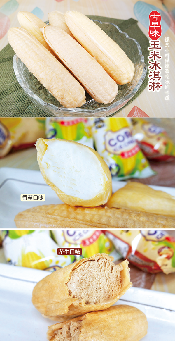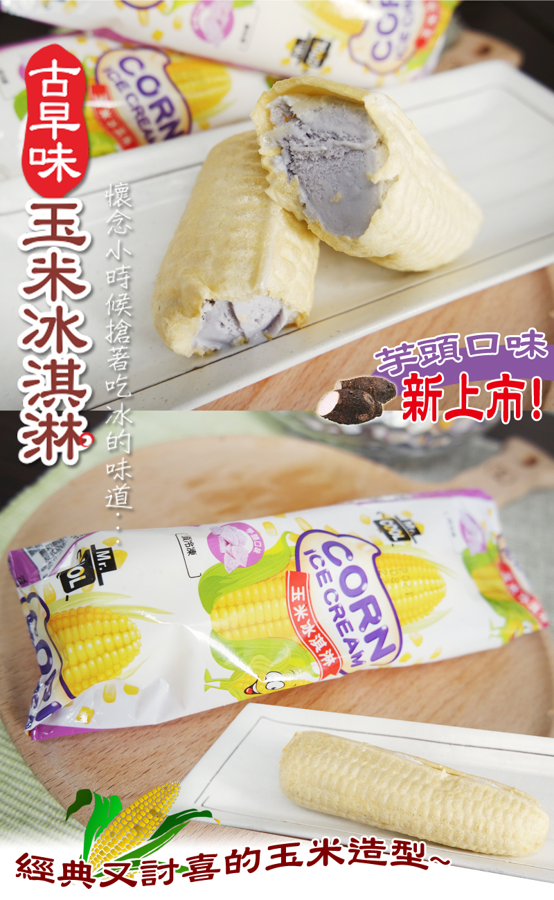 復古台灣古早味玉米冰淇淋,外皮酥脆可口,包裹著內餡甜蜜的