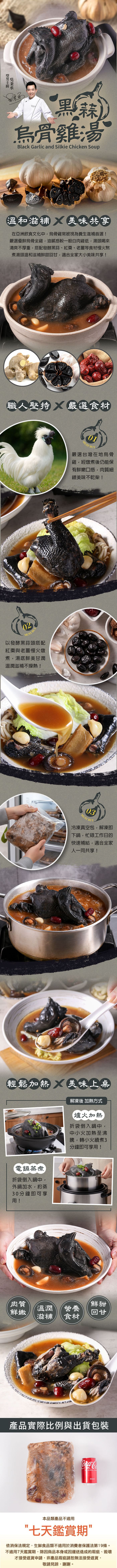 產品成分:水、烏骨雞、米酒、老薑、蒜仁、紅棗、黑蒜頭、鮮雞風味粉【食鹽、L-麩酸鈉、麥芽糊精、酵母抽出物、砂糖、水解植物大豆蛋白粉、洋蔥粉、香料】、肉味風味粉【食鹽、酵母抽出物、L-麩酸鈉、水解植物大豆蛋白粉、乳糖、砂糖、蒜粉、洋蔥粉、糊精、耐炸油(軟質棕櫚油、大豆油、芥花油)、香料】、普通精鹽、乾香菇、頂上高湯粉【L-麩酸鈉、砂糖、食鹽、酵母抽出物、麥芽糊精、洋蔥粉、蒜粉、香菇粉、5'-鳥嘌呤核苷磷酸二鈉、5'-次黃嘌呤核苷磷酸二鈉、水解植物大豆蛋白粉、玉米糖膠、青蔥粉、香料、糊精、耐炸油(軟質棕櫚油、大豆油、芥花油)、甘草酸鈉(甜味劑)】、特砂、雞肉香料【糊精、香料(中鏈三酸甘油酯、香料)】