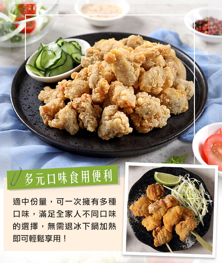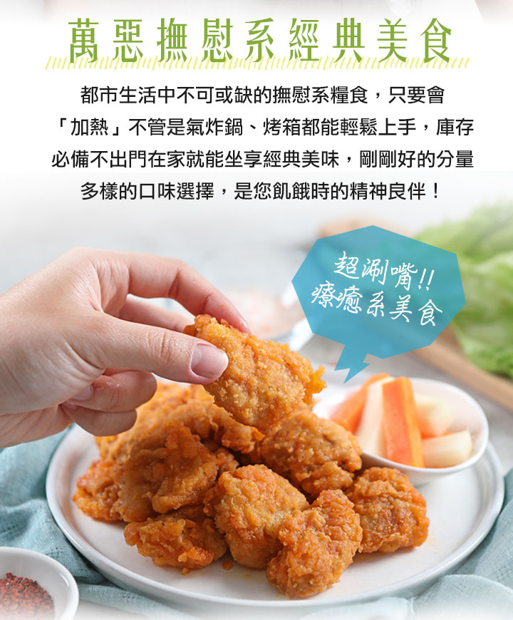 食用方式:不須解凍,以油炸或氣炸鍋方式加熱至全熟且金黃酥脆即可食用。