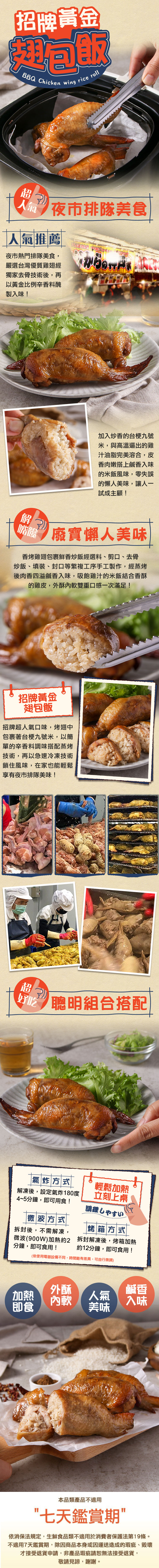 商品成分:雞翅、雞肉、白米、糯米、醬油、糖、鹽、複方香辛料[玉米澱粉、五香粉(八角、肉桂、丁香、小茴香、花椒、香料、桂枝)、辣椒、百草粉(香料、丁香、八角、花椒、肉桂)]、胡椒粉、蒜、L-麩酸鈉、多磷酸鈉、焦磷酸鈉(無水)、異抗壞血酸鈉(抗氧化劑)