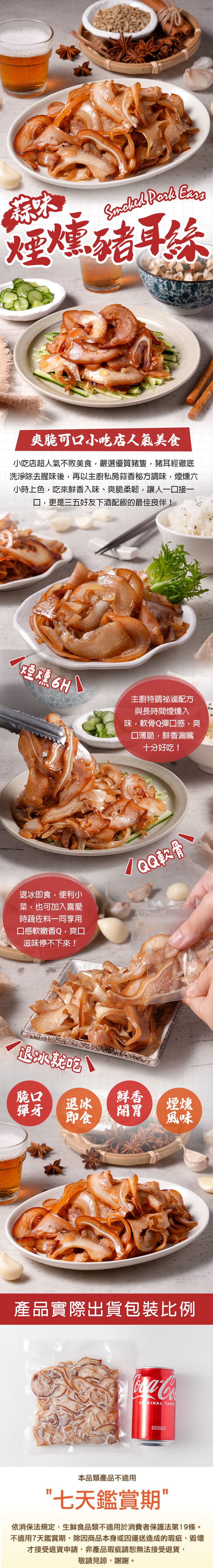 商品成分:豬耳絲【豬頭皮、豬耳朵、砂糖、食鹽、味精、蒜頭、蔥、辣椒、天然色素(紅麴色素)、香料、中鏈三酸甘油酯、麥芽糊精、D-木糖】、水、大豆沙拉油、芝麻油、鮮雞風味粉【食鹽、L-麩酸鈉、麥芽糊精、酵母抽取物、砂糖、水解植物大豆蛋白粉、洋蔥粉、香料】、食鹽、味鮮【L-麩酸鈉、琥珀酸二鈉、食鹽、5'-鳥嘌呤核苷磷酸二鈉、5'-次黃嘌呤核苷磷酸二鈉、胺基乙酸、DL-胺基丙酸】、砂糖、五香粉(小茴香、肉桂、陳皮、八角、胡荽子、甘草、丁香、當歸、芹菜籽、川芎、山奈) 、蒜