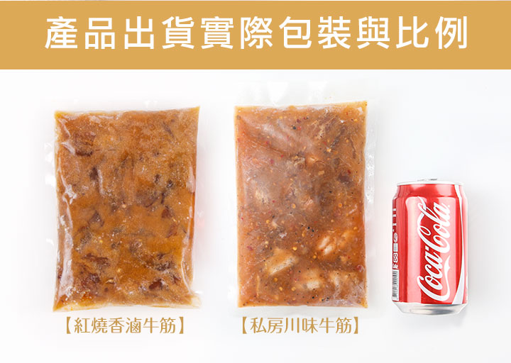 產品成份:牛筋(巴拉圭)、蕃茄醬(水、蕃茄糊、蔗糖、釀造醋、食鹽、香辛料(白胡椒、肉桂、紅辣椒、薑、丁香、肉荳蔻、芥末、月桂葉、眾香子))、醬油(非基因改造黃豆)、蠔油(水、蔗糖轉化液糖、非基因改造黃豆(高蛋白豆片))、冰糖、薑、蒜、米酒、水、滷包(當歸、川芎、桂皮、丁香、草荳蔻、八角、花椒、甘草)。