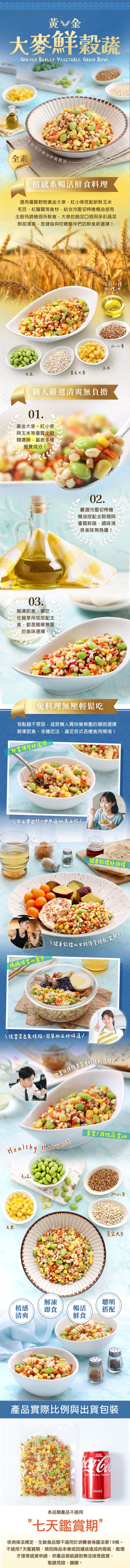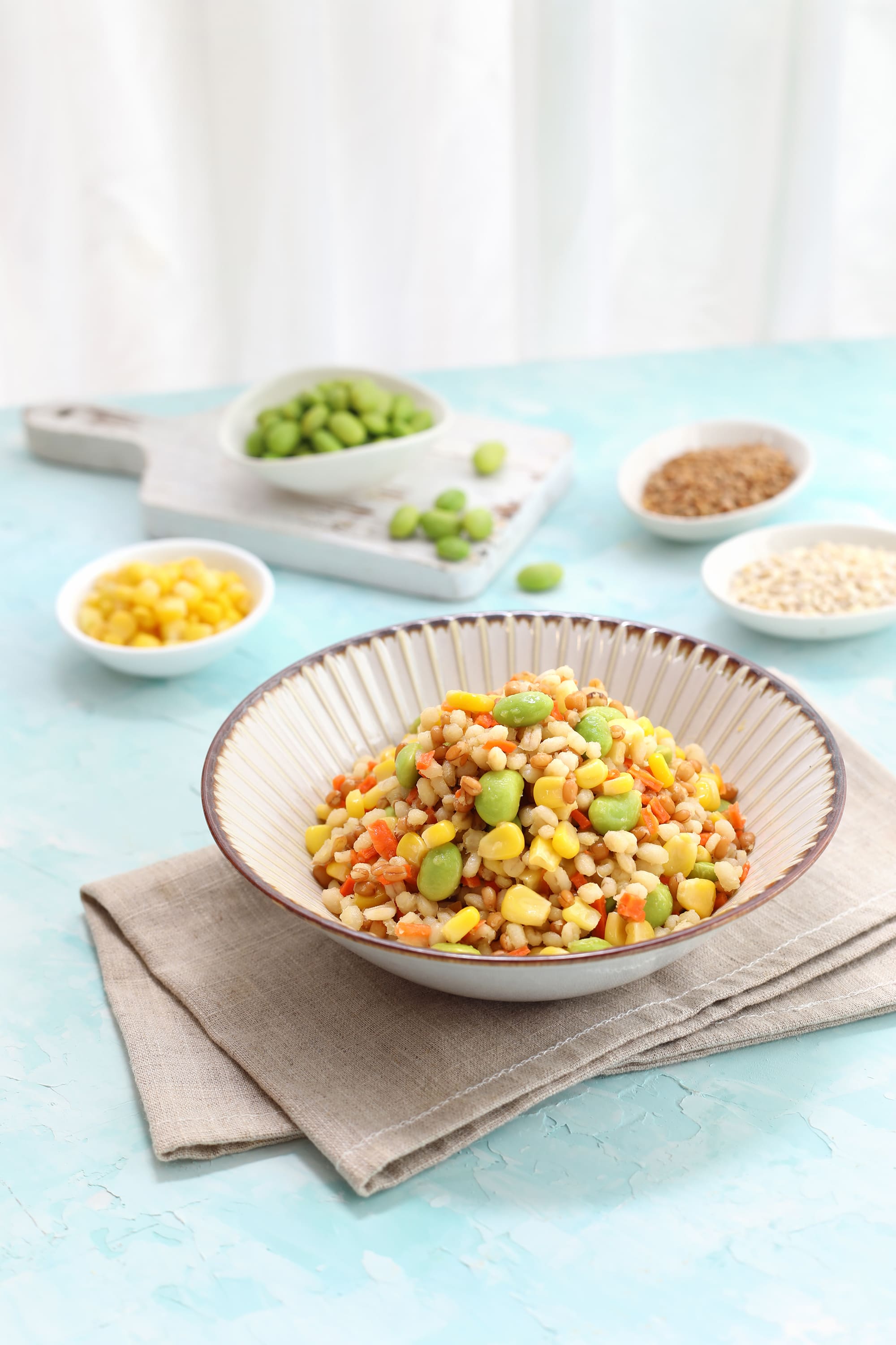 成分 : 大麥、甜玉米粒(非基因改造)、紅小麥、毛豆(非基因改造)、紅蘿蔔、水、初榨橄欖油、醬油、鹽、蔬菜調味粉(鹽、糖、麥芽糊精、小麥水解蛋白、酵母抽出物、高麗菜抽出物、棕櫚油)、香菇調味料(香菇、鹽、香菇萃取物)、非基因改造玉米發酵粉(麥芽糊精、發酵玉米)